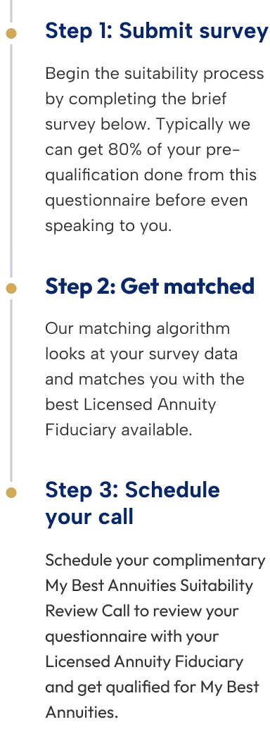 My Best Annuities is a marketing website designed to educate consumers. It does not make product recommendations. Prospects who opt-in for more information may be referred to a state-licensed insurance agent who has paid a fee to receive the referral information. These independent agents are not employees of My Best Annuities and may recommend products over which My Best Annuities has no control.